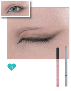 ふた重のラインに合わせて、黒のリキッドライナーでWラインを入れ、ペンシルでラインをぼかす。