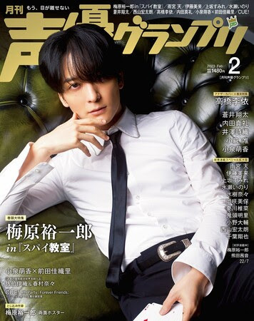 巻頭大特集には、話題のアニメ『スパイ教室』で“世界最強のスパイ”クラウスを演じる梅原裕一郎が登場。キャラクターを思わせるスリーピーススーツを身にまとい、色気あふれる極上グラビアをお届け。また、声優デビュー10周年という節目の年を迎えた梅ちゃんに、アニメの見所や2023年をどんな年にしたいかという展望を語ってもらった。