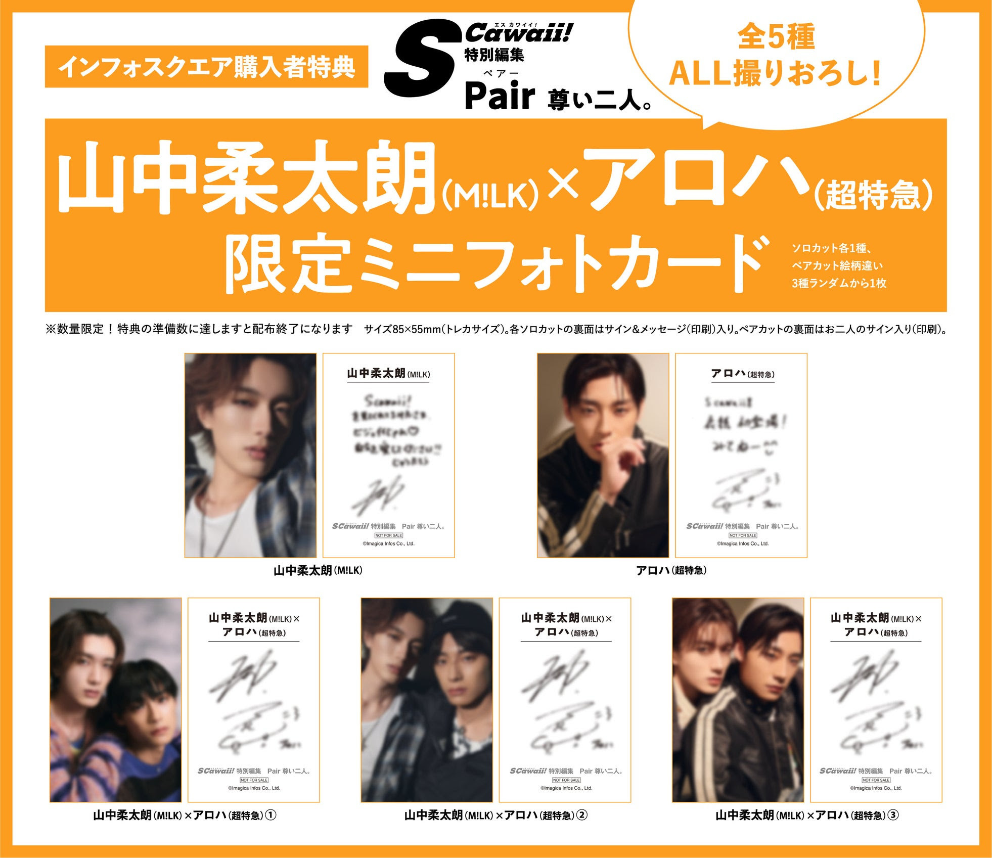 【表紙解禁!!】メロいペアが大集合! 10月30日(木)発売『S Cawaii!特別編集 Pair 尊い二人。』【表紙】は山中柔太朗(M!LK)×アロハ(超特急)、【バックカバー】は奥野壮×豊田裕大!